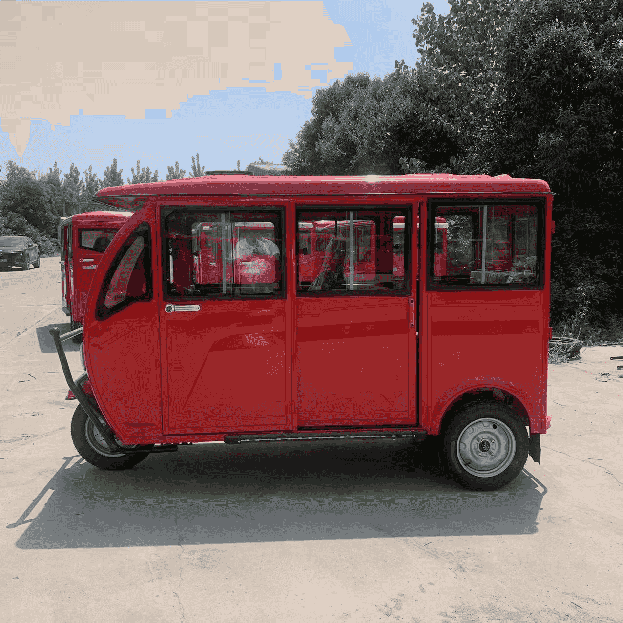 The ORVIK SK-ZK is a heavy-duty electric passenger tricycle engineered strictly for reliable personnel transit in off-road environments, private resorts, and large industrial campuses. Featuring substantial overall dimensions (1750mm height for overhead canopy clearance) and built on a reinforced framework structure with rear leaf spring suspension, this vehicle ensures a stable and comfortable ride for passengers even on uneven gravel or dirt paths.